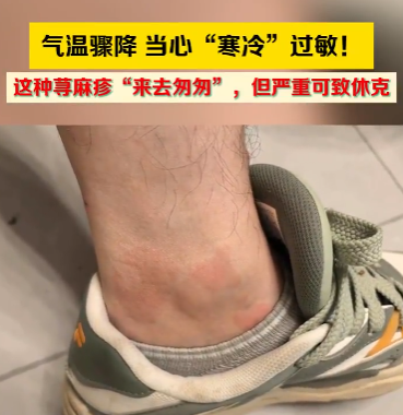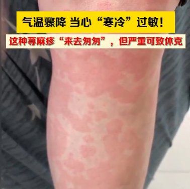 南京明基医院皮肤科副主任医师刘艳表示,最近“寒冷性荨麻疹”已经悄然进入高发期,它通常来得快、去得也快,但严重时可能引发胸闷、休克等全身反应,切不可掉以轻心。