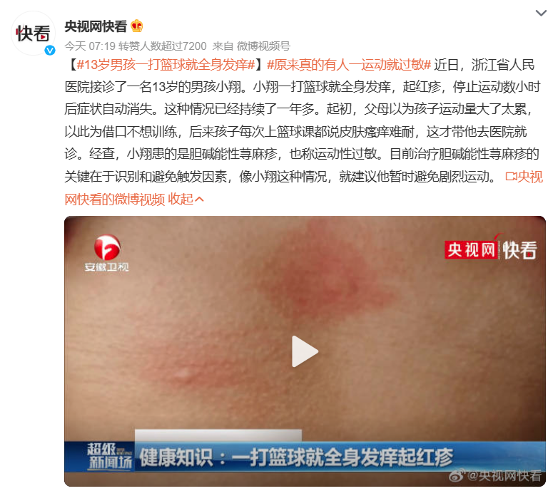 在日常生活中及媒体报道中,我们经常看到一些“对自己的汗过敏”“对阳光过敏”“洗澡过敏”等病例,实际上可能就是荨麻疹在作祟。